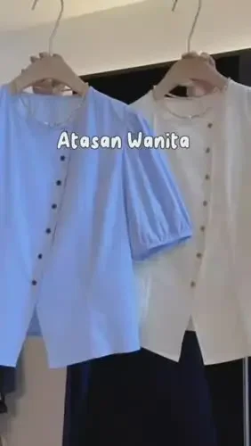 [NEW]CHICMORE Atasan wanita gaya leher bulat lengan puff longgar untuk wanita