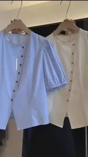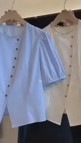 [READY STOCK]CHICMORE Atasan wanita kemeja putih cantik lengan pendek gaya modis