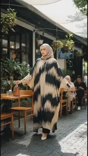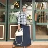 ASAYA Gamis wanita elegan motif garis kotak biru abu modern kekinian
