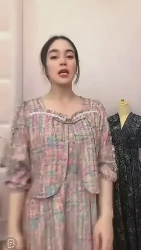 [CUCI GUDANG]FADFAD Gaun motif bunga lengan panjang dengan kerah bulat lengan puff dan terdapat kancing dan terdapat tali bagian pinggang