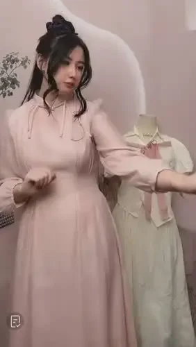 [NEW]CHICMORE Gaun lengan pendek dan kerah bentuk v-neck terdapat renda bagian lengan dan kerah