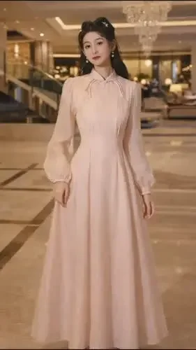 [NEW]CHICMORE Gaun cheongsam retro lengan panjang gaya nasional untuk wanita