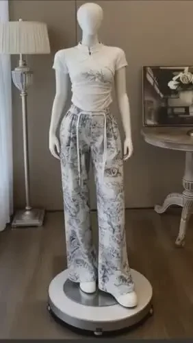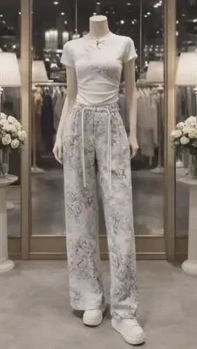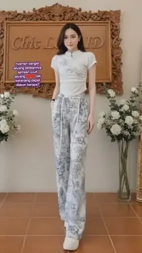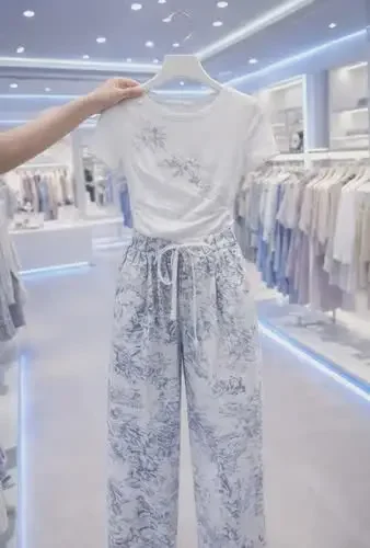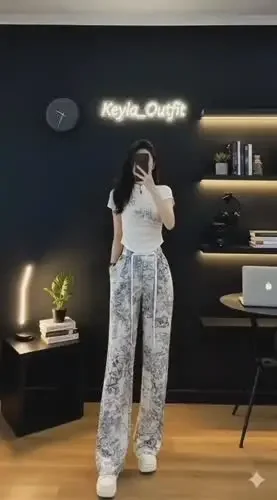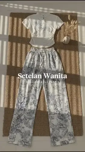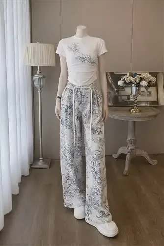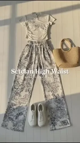 [NEW]FADFAD Setelan wanita atasan lengan pendek minimalis dan celana panjang high waist motif cetak