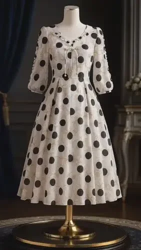 FADFAD Gaun lengan panjang model balon motif cetak unik dengan bentul leher u
