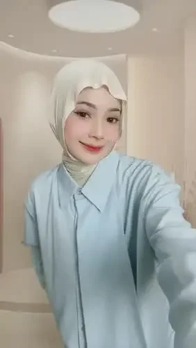 ASAYA Gamis wanita elegan motif garis kotak biru abu modern kekinian