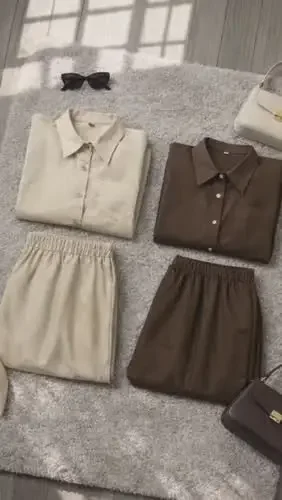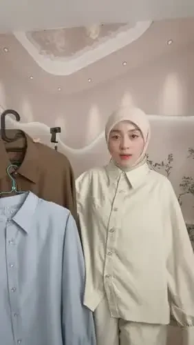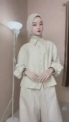 ASAYA Setelan wanita muslim 2 pcs - kemeja kontras + celana kulot nyaman