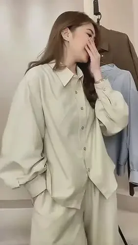 ASAYA Set dua potong atasan dan celana longgar yang modis dan sederhana untuk wanita