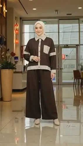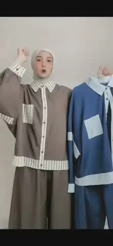 ASAYA Setelan wanita muslim 2 pcs - kemeja kontras + celana kulot nyaman