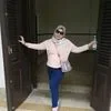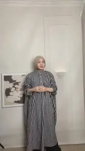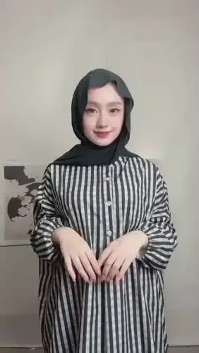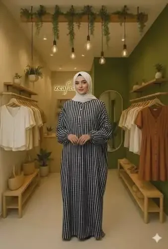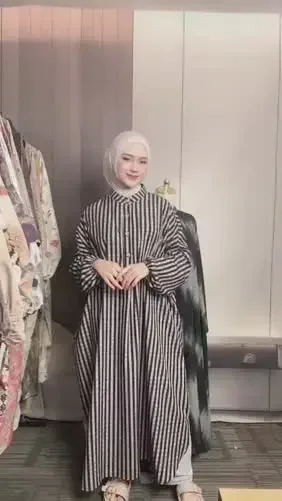 ASAYA Gamis wanita elegan motif garis kotak biru abu modern kekinian
