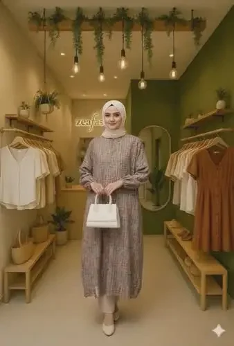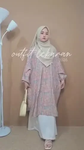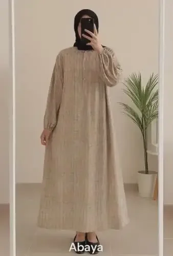 ASAYA Gamis wanita elegan motif garis kotak biru abu modern kekinian