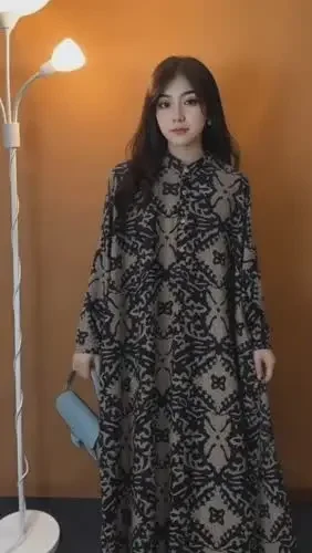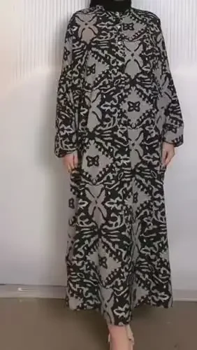 [READY STOCK]ASAYA Gaun panjang longgar kasual tipis bermotif dengan desain mode elegan