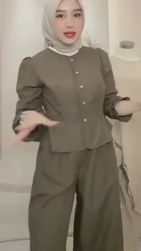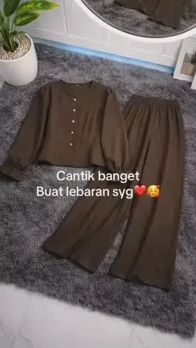 ASAYA Setelan wanita muslim 2 pcs - kemeja kontras + celana kulot nyaman