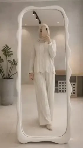 [NEW]ASAYA Setelan dua potong dengan kemeja lengan panjang bermodel unik dengan kerah dan hem tidak beraturan, dipadukan dengan celana lebar polos