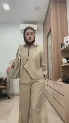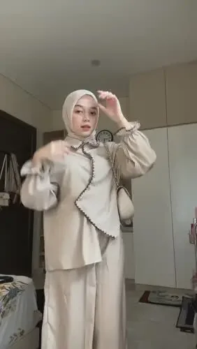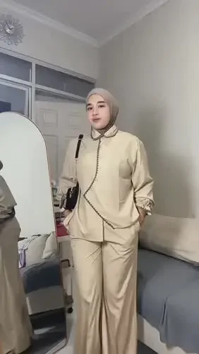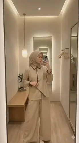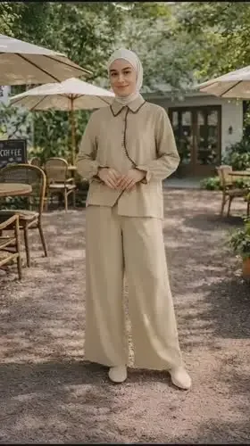 ASAYA Setelan wanita muslim 2 pcs - kemeja kontras + celana kulot nyaman