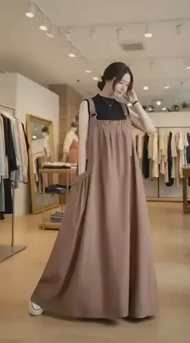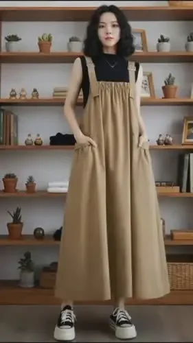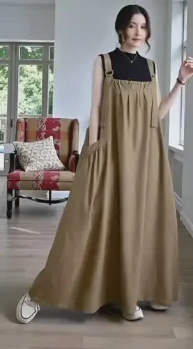 [NEW]CHICMORE Gaun panjang wanita kasual tanpa lengan warna polos (tanpa lapisan dalam)