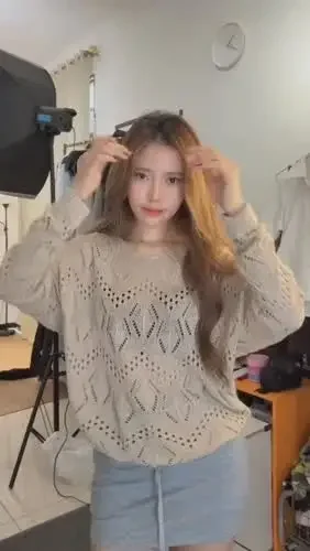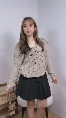 CHICMORE Atasan sweter lengan panjang berongga pullover v-neck untuk wanita