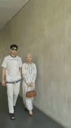 ASAYA Gamis wanita elegan motif garis kotak biru abu modern kekinian