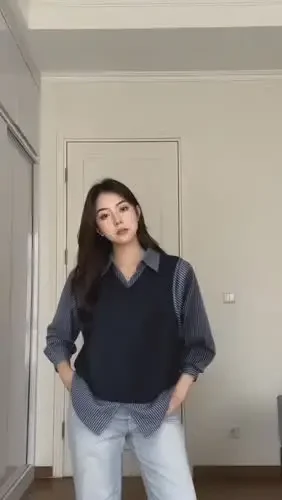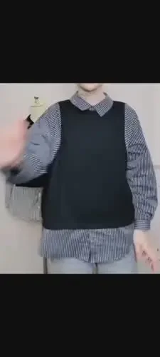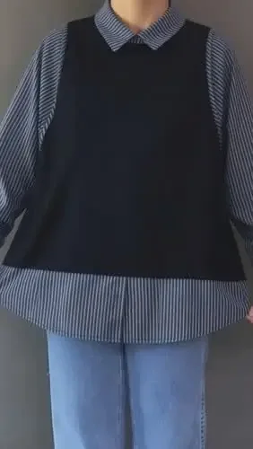 FADFAD Atasan kemeja dua potong palsu lengan panjang dan kerah polo