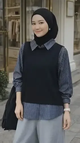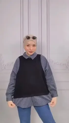 FADFAD Atasan berlapis desain dua potong lengan panjang gaya elegan untuk wanita