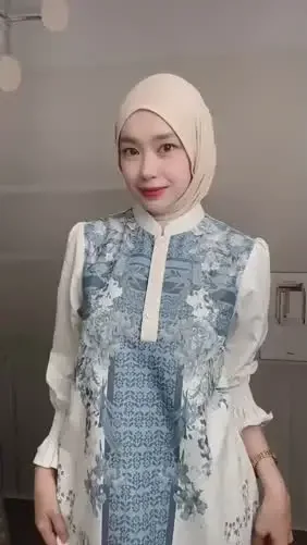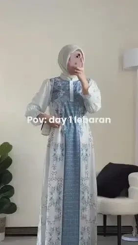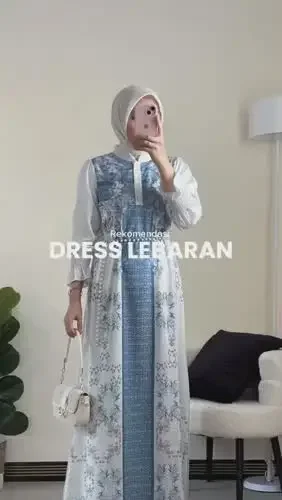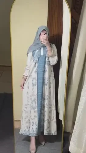 ASAYA Gamis wanita elegan motif garis kotak biru abu modern kekinian