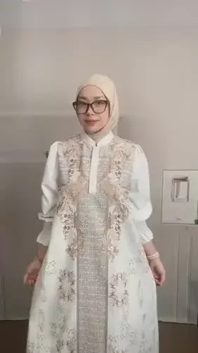 ASAYA Gaun elegan dengan motif posisi mode lengan panjang