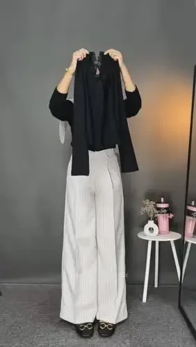 CHICMORE Atasan kemeja dengan lengan panjang motif garis garis untuk wanita