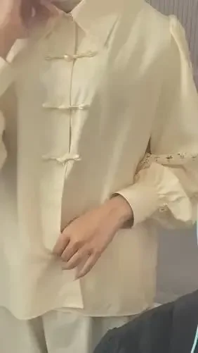 CHICMORE Set baju lengan panjang baru, kemeja dengan hiasan renda sulaman warna solid, dipadukan dengan celana panjang longgar