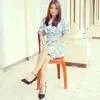 CHICMORE Atasan lengan panjang dengan krah dan kancing bulat, motif bunga kecil dipadukan dengan motif garis, dipadukan dengan celana panjang bermotif sebagai setelan