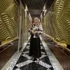 [NEW]CHICMORE Atasan wanita sederhana dengan desain pita berkilau ditambah aksesori bordir bunga, dipadukan dengan celana lebar motif garis bermotif cetak warna polos
