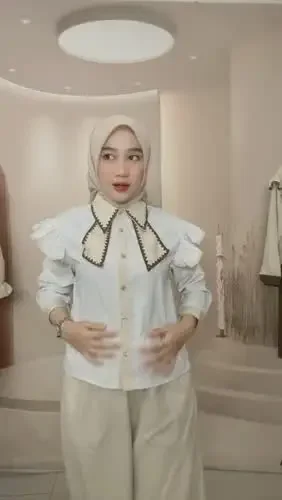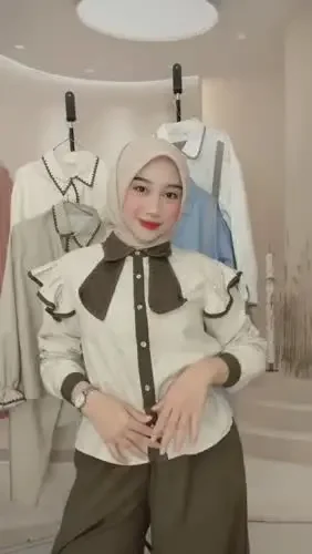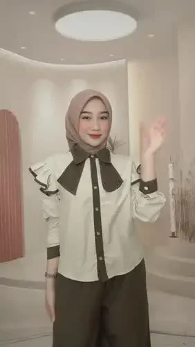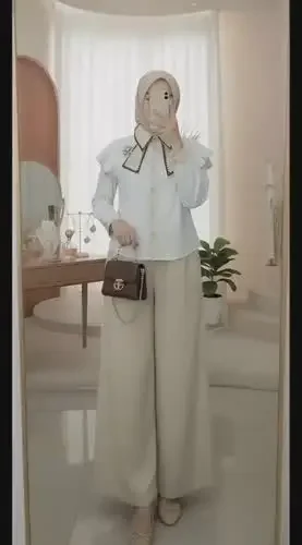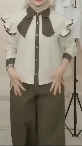 ASAYA Setelan wanita muslim 2 pcs - kemeja kontras + celana kulot nyaman