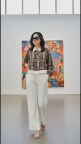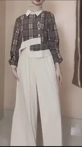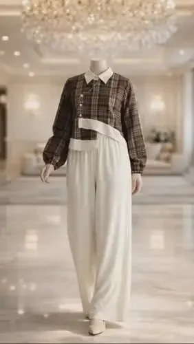 [NEW]ASAYA Setelan dua potong dengan kemeja lengan panjang bermodel unik dengan kerah dan hem tidak beraturan, dipadukan dengan celana lebar polos