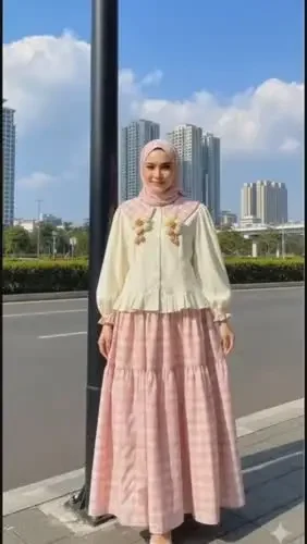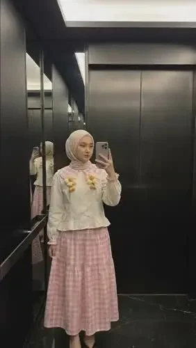 [NEW]CHICMORE Setelan atasan dan rok wanita dengan kemeja elegan bermotif kotak-kotak retro dan bunga timbul