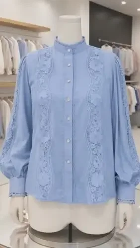 [NEW]CHICMORE Atasan kemeja wanita pendek desain bunga lengan panjang gaya retro