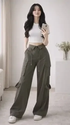 [NEW]CHICMORE Celana panjang pinggang ramping gaya cargo terbaru