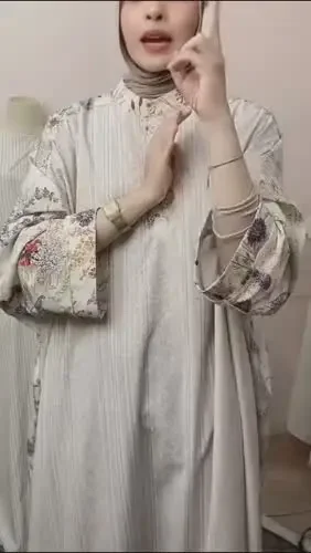 ASAYA Gaun panjang longgar kasual tipis bermotif dengan desain mode elegan