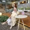 ASAYA Gaun gaya elegan kasual lengan panjang dengan