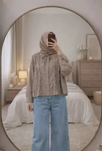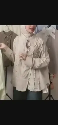 ASAYA Setelan wanita muslim 2 pcs - kemeja kontras + celana kulot nyaman