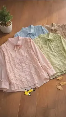 ASAYA Kemeja gaya korean dengan tali pita manis kancing aktif sebaris untuk wanita feminime