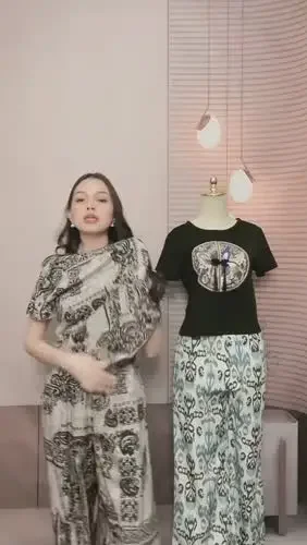 [NEW]FADFAD Setelan wanita atasan lengan pendek minimalis dan celana panjang high waist motif cetak