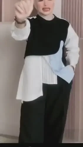 FADFAD Atasan ramping lengan panjang dengan model dua potong palsu