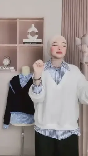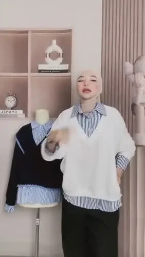 FADFAD Atasan berlapis desain dua potong lengan panjang gaya elegan untuk wanita