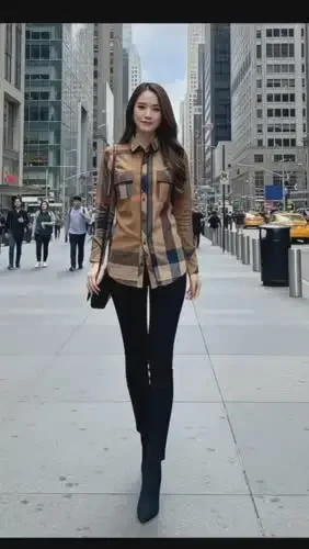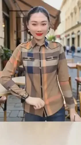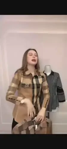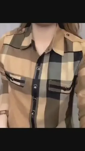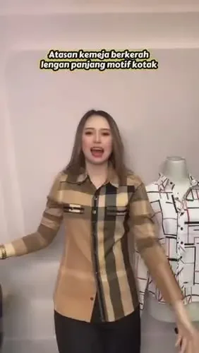FADFAD Atasan kemeja berkerah polo lengan panjang dan motif kotak kotak