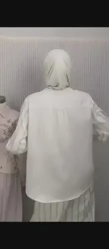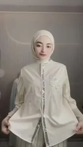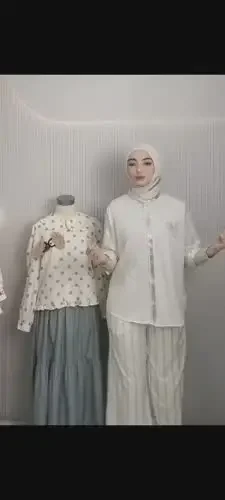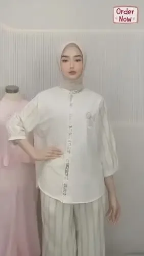 CHICMORE Kemeja lengan panjang dengan aksen bordir, kancing tangan, dipadukan dengan celana lebar polos