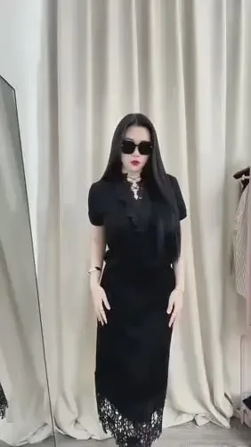 [NEW]FADFAD Setelan midi hitam elegan wanita modern dengan detail feminin dan desain chic untuk tampilan casual