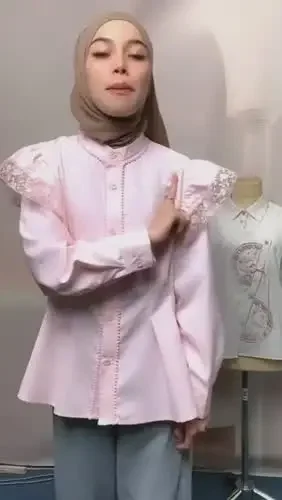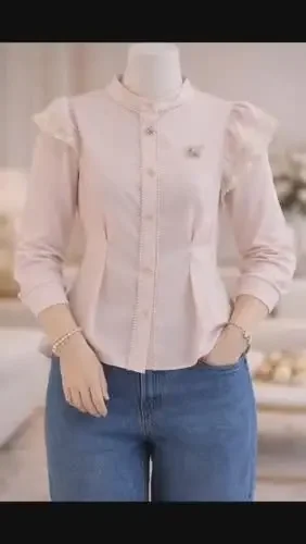 FADFAD Atasan kemeja gaya ramping dengan kerah v dan aksesoris elegant