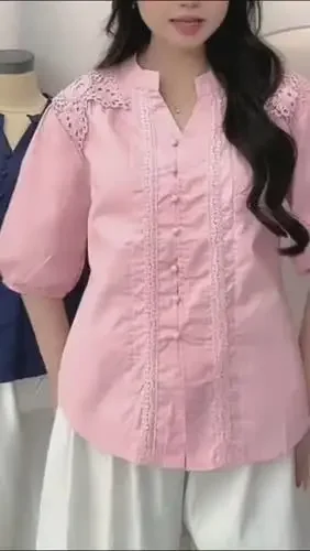 [NEW]CHICMORE Atasan mode ramping dengan hiasan renda dan kerah v wanita