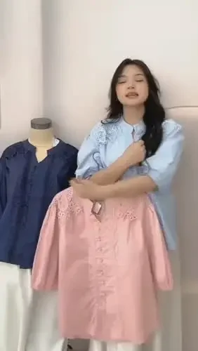 [NEW]CHICMORE Atasan wanita gaya leher bulat lengan puff longgar untuk wanita