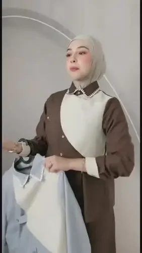 ASAYA Setelan wanita muslim 2 pcs - kemeja kontras + celana kulot nyaman