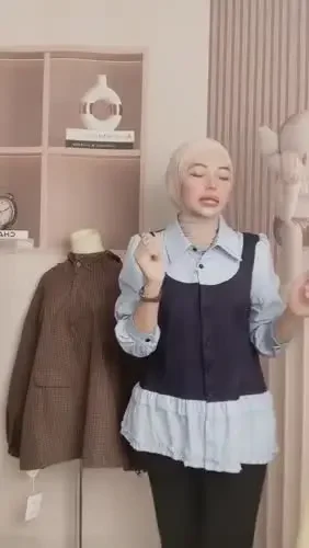 FADFAD Atasan berlapis desain dua potong lengan panjang gaya elegan untuk wanita