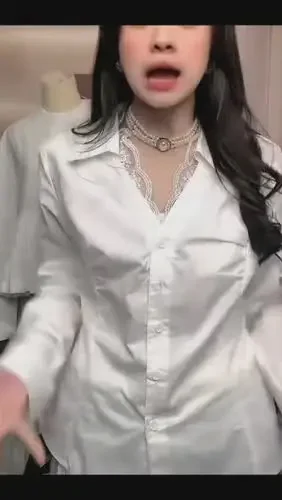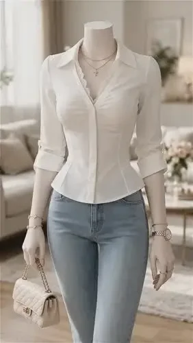 FADFAD Atasan kemeja gaya ramping dengan kerah v dan aksesoris elegant